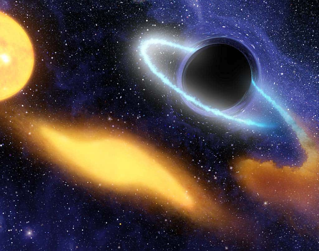 Since inactive black holes are as black as night, they can only be detected when there is a star near them. It is this star, or rather its behavior, that allows astronomers to see the dark companion of the luminary, the black hole.